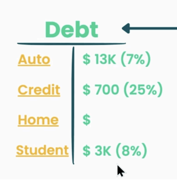 Our auditee said, “I feel like paying off debt is the vibe”. While I don’t understand what this means, I agree…with a slight addition. At the end of each month, he has about $2,000 to utilize. He could: