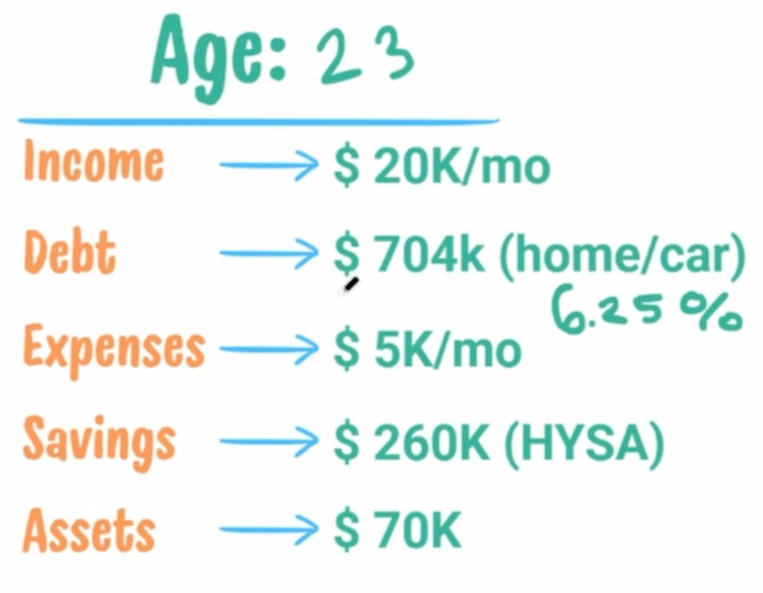 He’s 23, from Boston, and earns $20,000 a month after taxes as a real estate photographer (Note: he indicated that this was extremely conservative). He’s sitting on $260K in a high-yield savings account, unsure what to do next. Let’s dive into the numbers. And remember: you are never “behind” on your money journey. We’re all just on different levels.